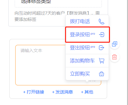 1.在后台添加一个菜单/橱窗卡片,选择下方的“+登录"的按钮,创建一个Log in按钮